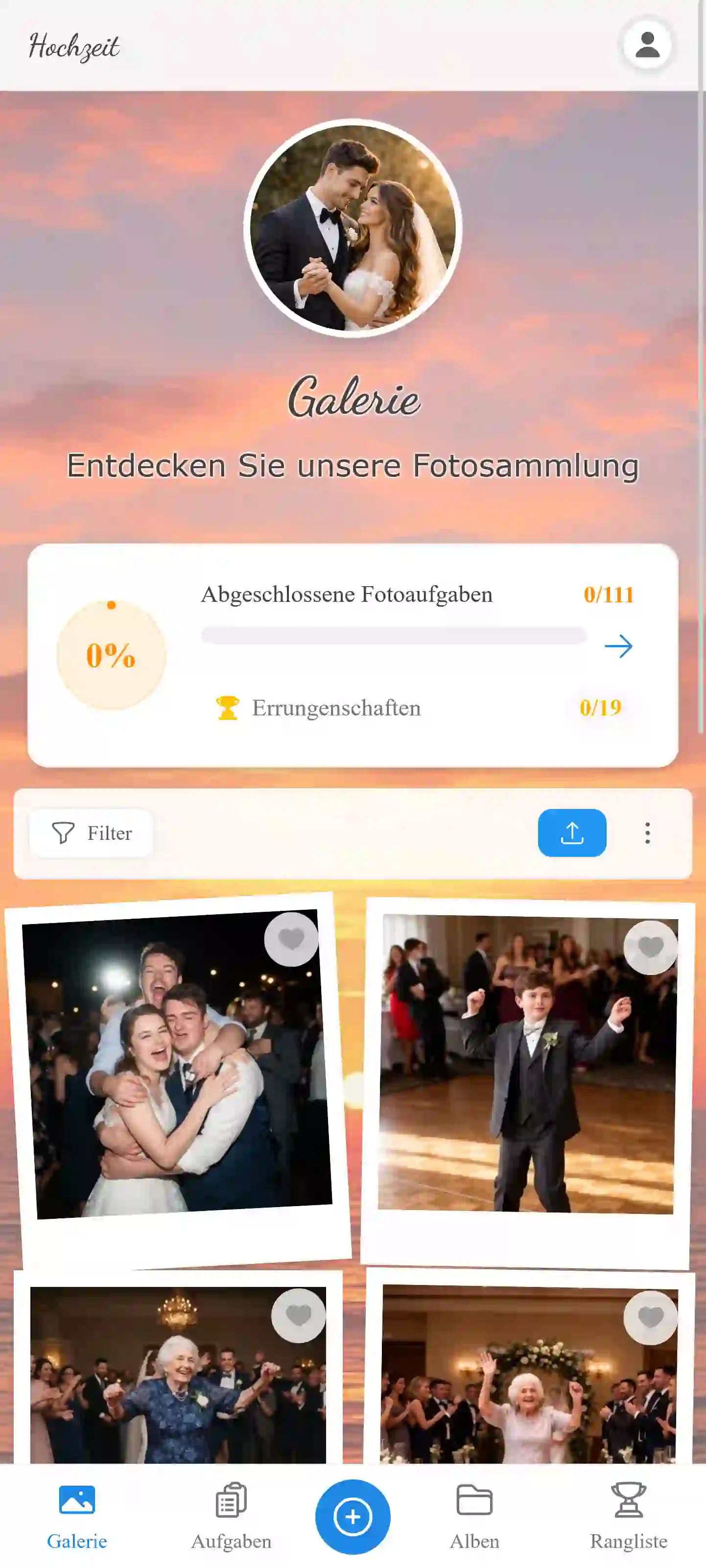 Jetzt kaufen, jederzeit nutzen. Die Eventlaufzeit beginnt nachdem die ersten 10 Fotos hochgeladen wurden, nicht ab dem Kaufdatum.