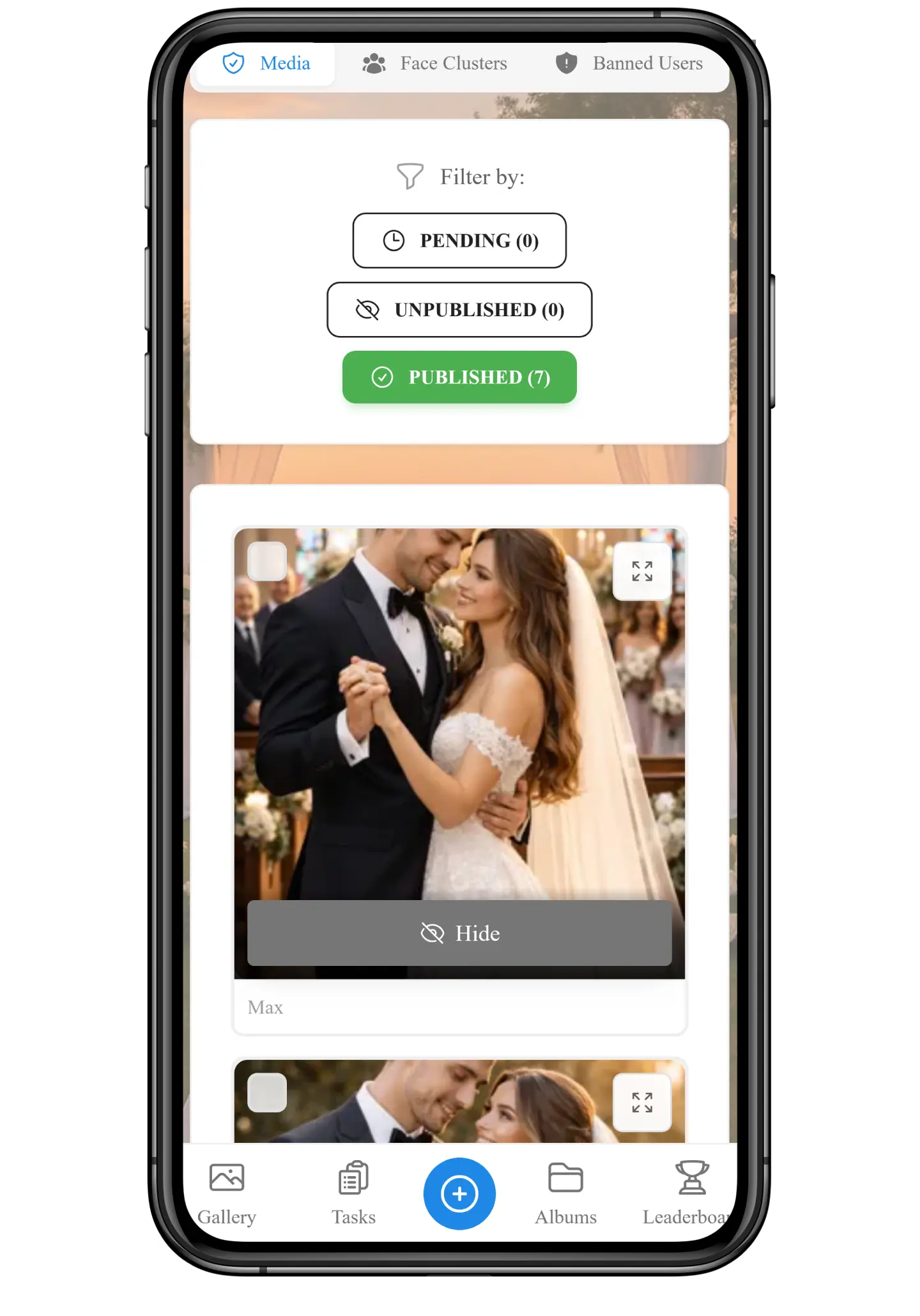 These two layers work together seamlessly. The AI filter handles the heavy lifting — scanning hundreds or thousands of photos without any human effort — while the manual tools give organizers the final say on edge cases and the ability to manage their gallery proactively. The result is a gallery that stays clean and professional without requiring constant human monitoring.